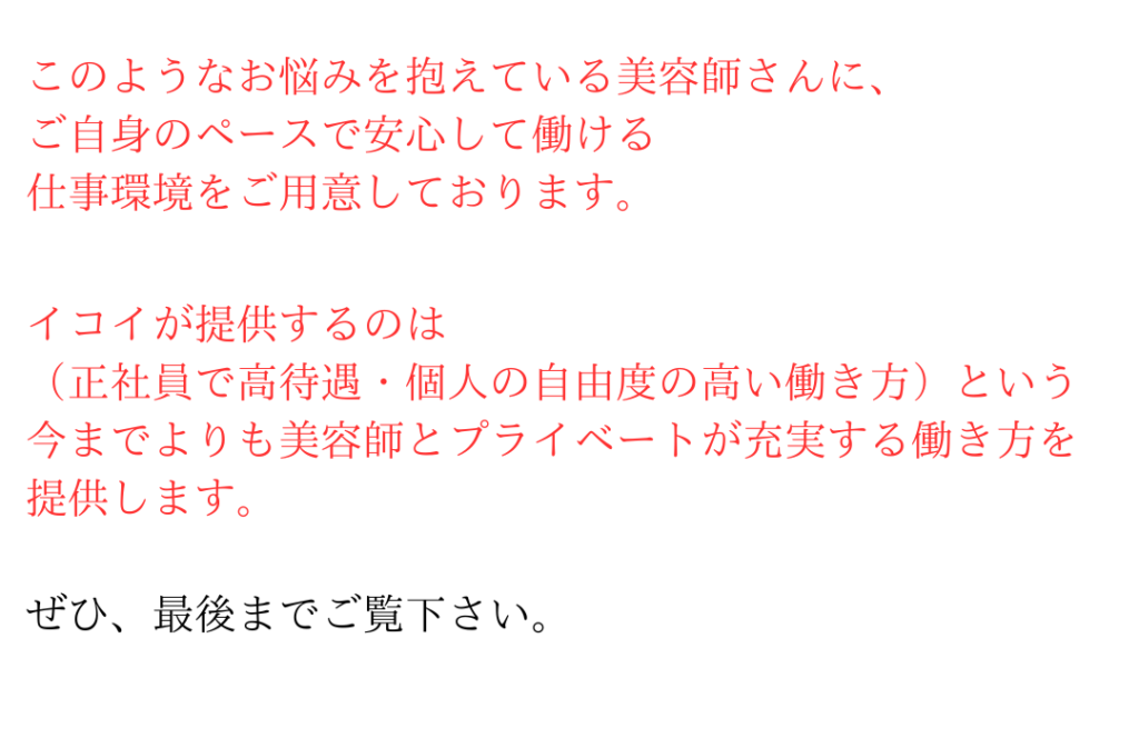 icoi hair&spaのリクルートページ